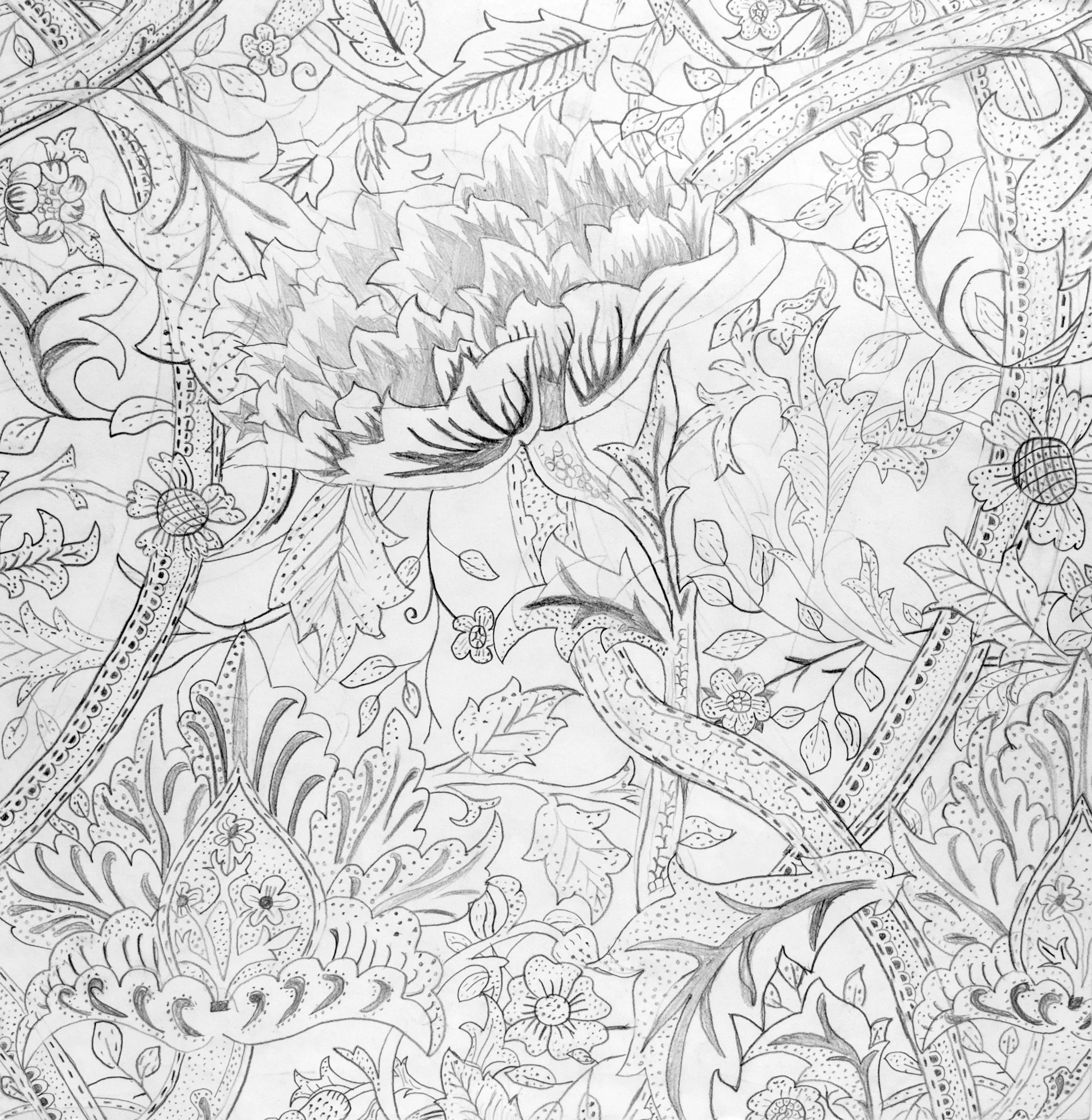 When my high schoolers were doing exams at the end of last term, I had them sit a “test” to transcribe a William Morris design in pencil. I asked that they work with accuracy and precision to communicate the lines, shapes, values, and patterns in their reference material. I was so impressed with their work that I had the students who hadn’t finished in the allotted time complete their drawings upon returning from the break.